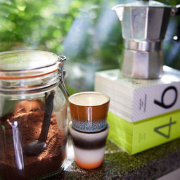 70er-Jahre-Ristretto-Tassen von HK Living sind süße kleine Keramiktassen, die sich perfekt für eine kleine Tasse Kaffee eignen. Die Tassen sind in einem Mix aus modernen Pastellfarben mit einem eher Retro-Look gestaltet. Die Ristretto-Tassen sind aus handgefertigtem Steinzeug gefertigt, wodurch jede Tasse ein absolutes Unikat ist – es kann zu Abweichungen in Farbe, Muster und Textur kommen.