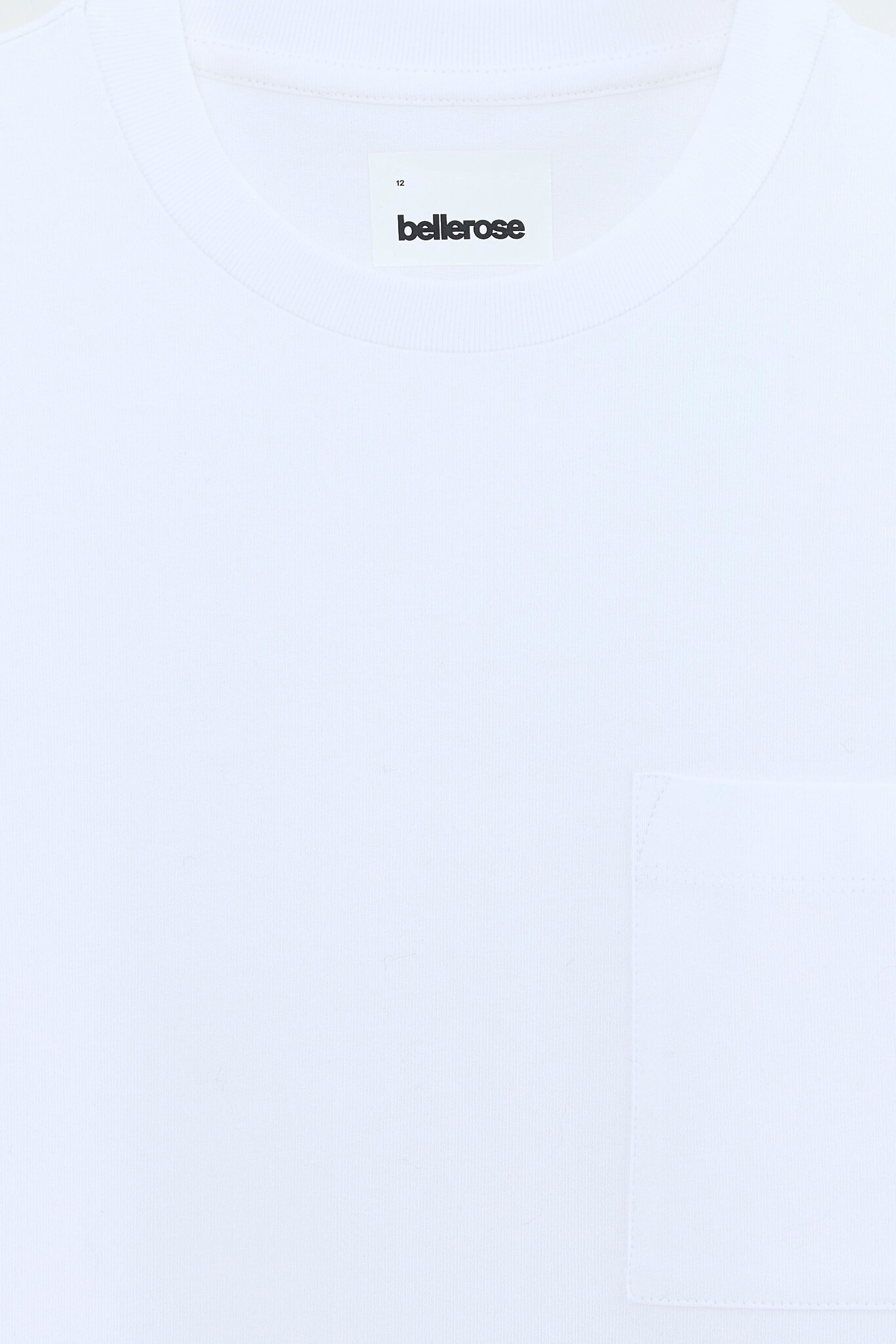 Lässiges T-Shirt mit Rundhalsausschnitt aus weißem Baumwolljersey mit aufgesetzter Brusttasche.