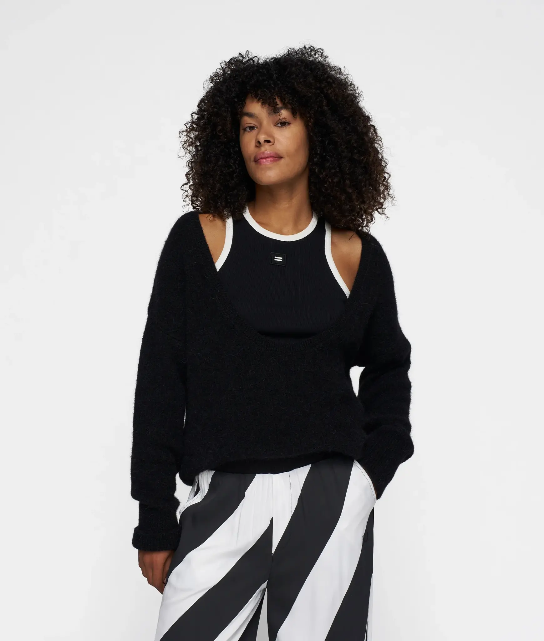 Entspannt geschnittener Pullover mit tiefem Halsausschnitt aus einer weichen Alpaka-Wollmischung. Mit tiefem Rundhalsausschnitt, „10“-Monogramm-Logo-Stickerei auf der Rückseite und einem kleinen „CODE“-Label am linken Saum. Perfekt zu kombinieren mit dem Tank Top Rib. Der Artikel hat eine lockere Passform und fällt größengerecht aus.