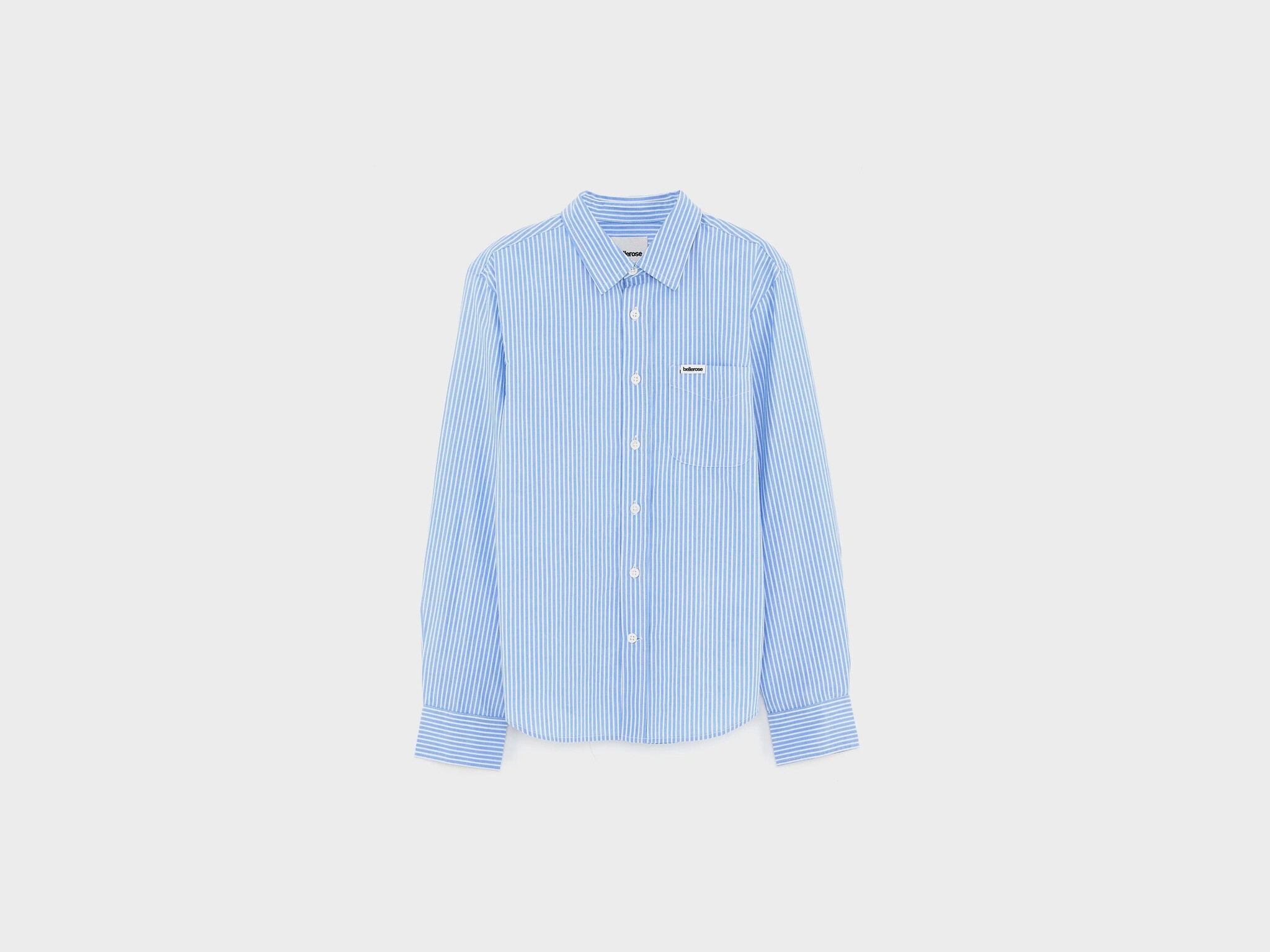 Klassisches Hemd mit Knopfleiste aus weißer Popeline-Baumwolle. Lange Ärmel mit eng anliegenden Manschetten.