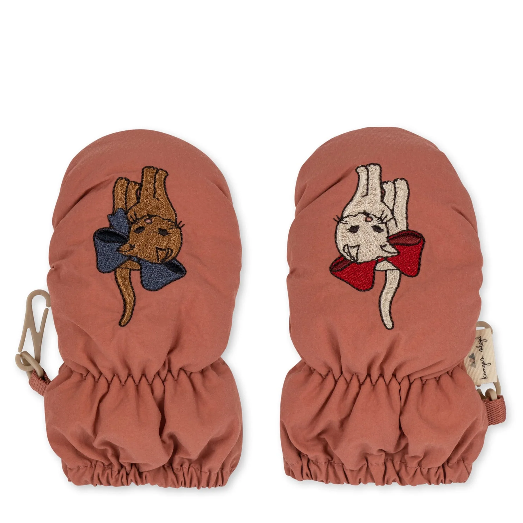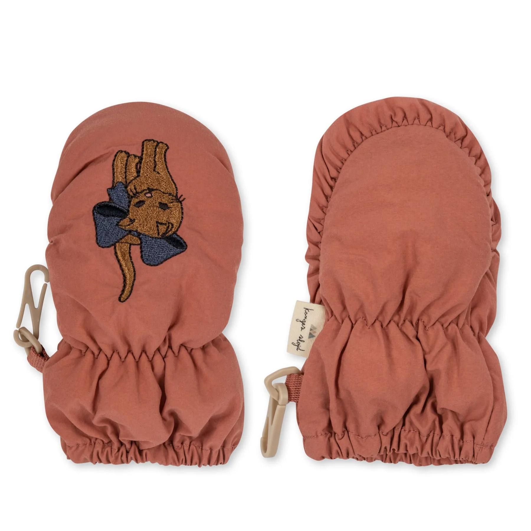 Super gemütliche Fäustlinge von Konges Sløjd, die winddicht, atmungsaktiv und wasserdicht sind. Die Fäustlinge haben ein warmes Fleece-Innenfutter und sind mit THERMOLITE-Futter aus recycelten Fasern gefüttert. Die Fäustlinge sind mit einer BIONIC FINISH ECO-Beschichtung versehen, einer hoch atmungsaktiven und wasserabweisenden Imprägnierung.