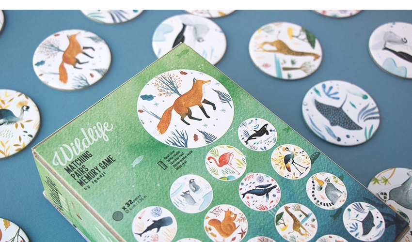 Ein Memory-Spiel für Kinder und Erwachsene; Gewinner ist der Spieler, der die meisten passenden Paare findet. Vollständige Anweisungen in der Box enthalten.
