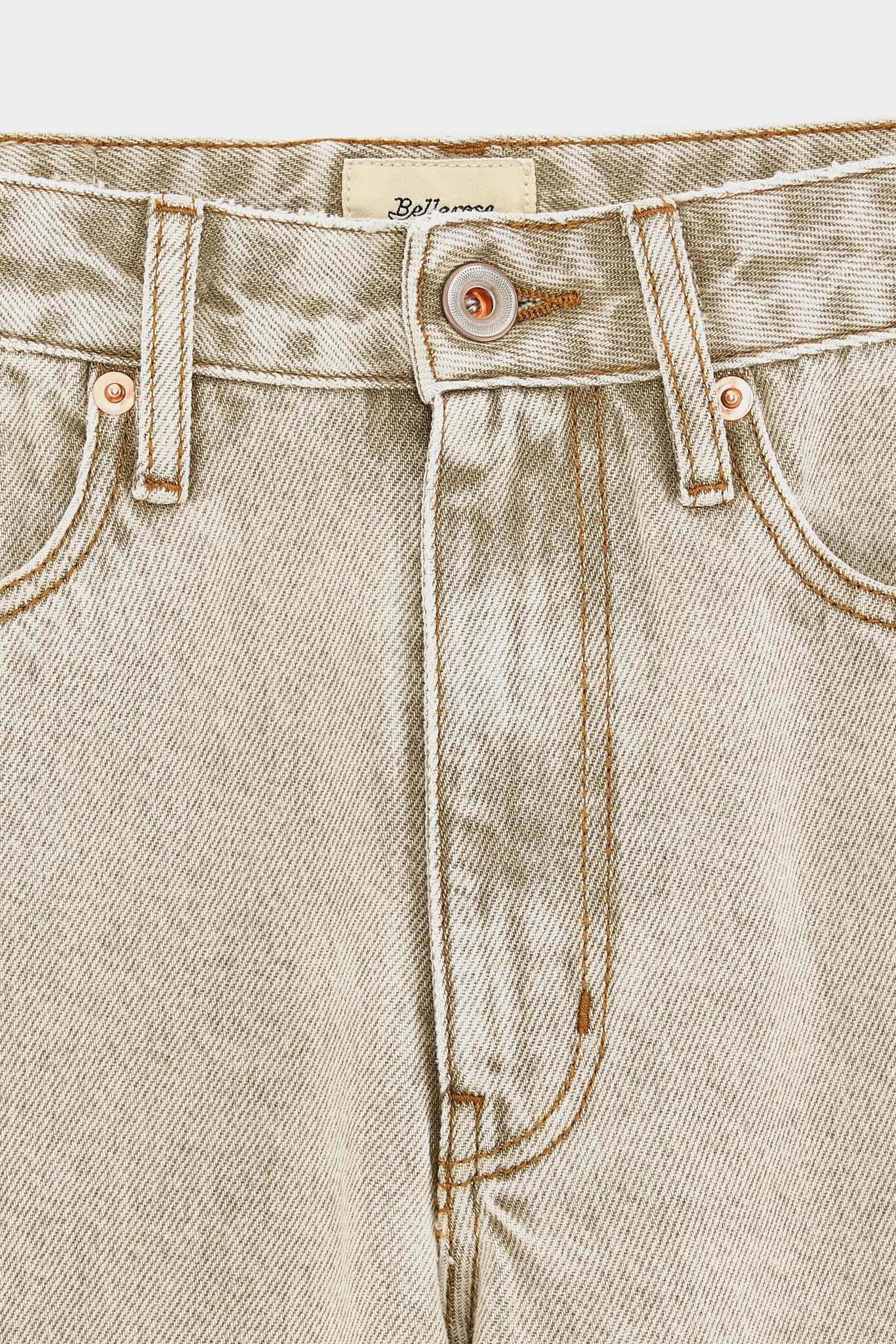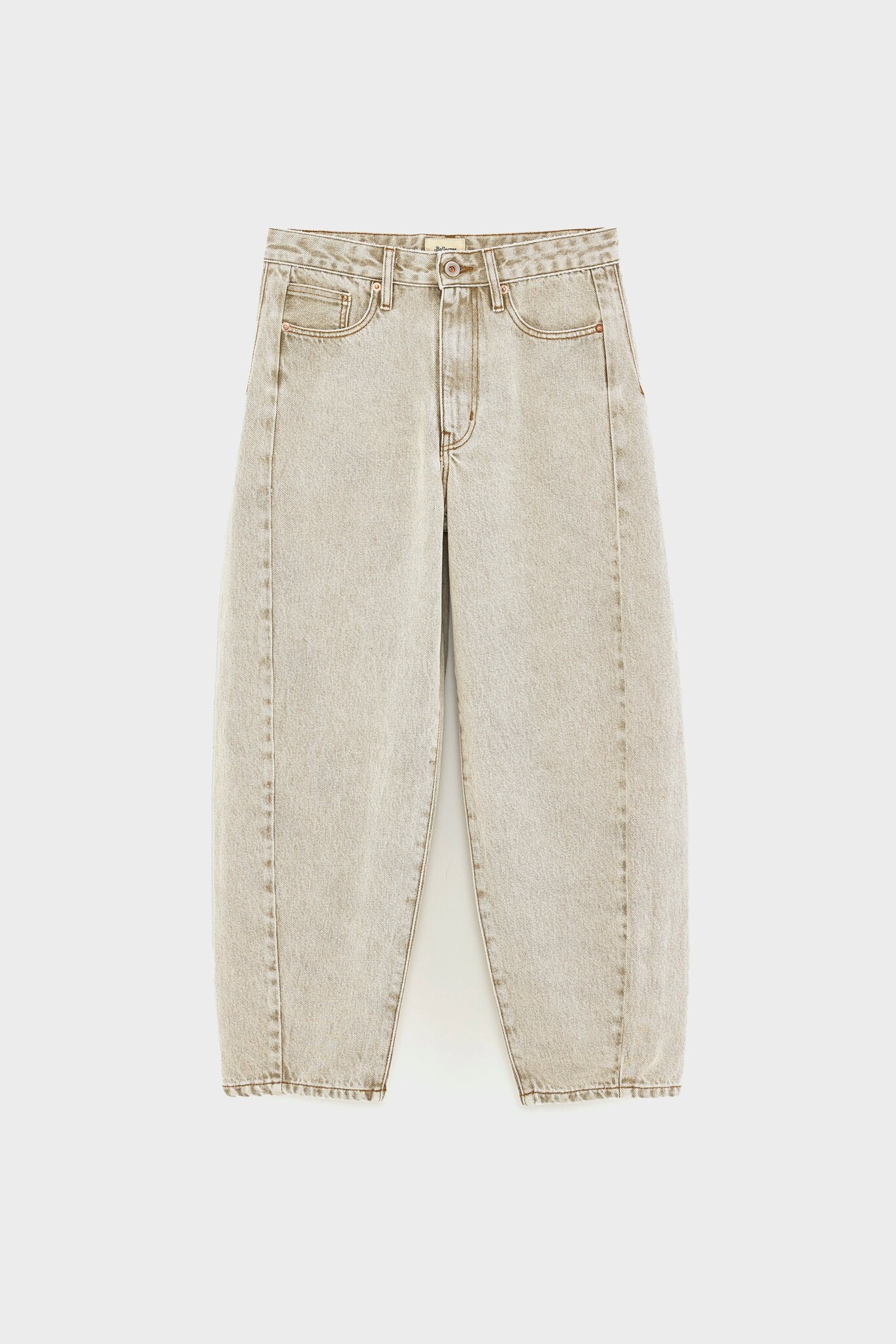 Hoch geschnittene Ballon-Leg-Jeans mit seitlichen Abnähern für zusätzliche Struktur, aus Baumwoll-Denim in Vintage-Braun gewaschen.