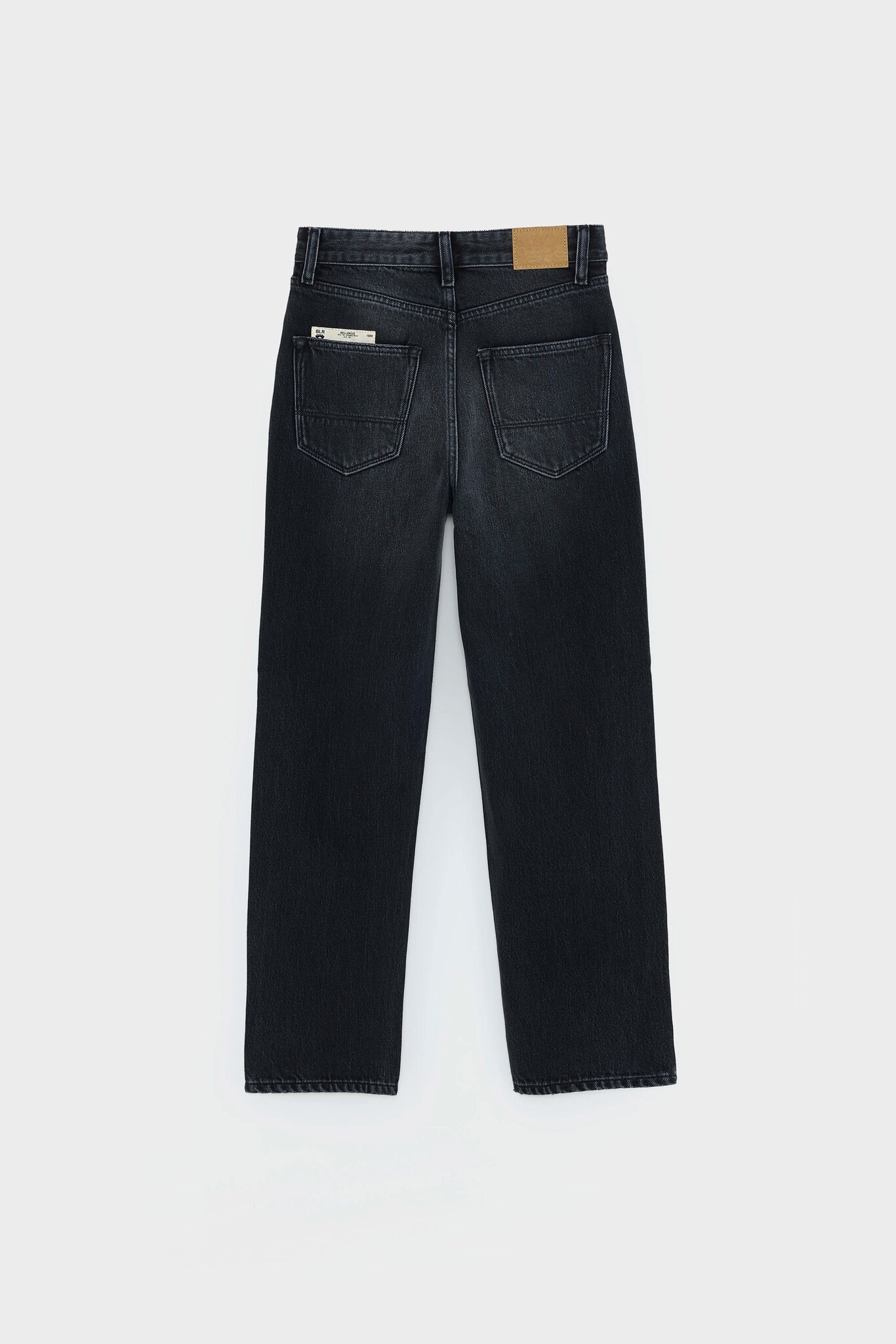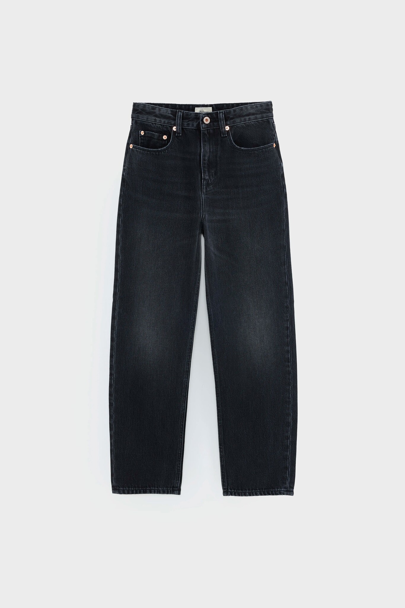 Entspannte 5-Pocket-Jeans mit mittlerer Leibhöhe und weitem Bein, aus vintage-schwarzem Baumwoll-Denim.