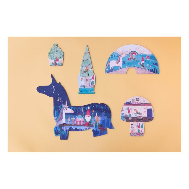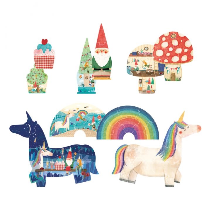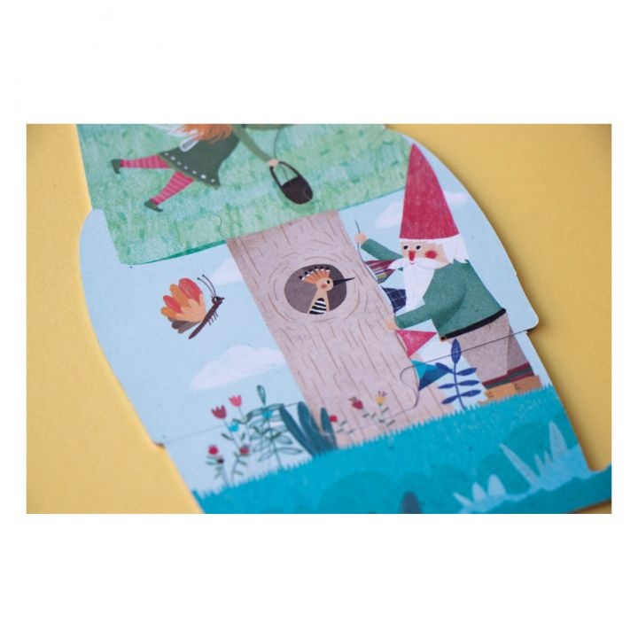 5 reversible progressive Puzzles (von zwei bis zehn Teilen) für die jüngsten Familienmitglieder, um eine schöne Freundschaftsgeschichte zu entdecken.