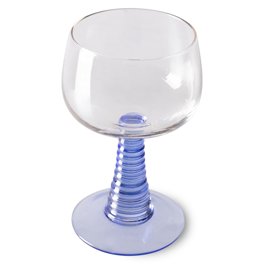 Mundgeblasenes Weinglas mit massivem, blau gefärbtem Glasboden.
