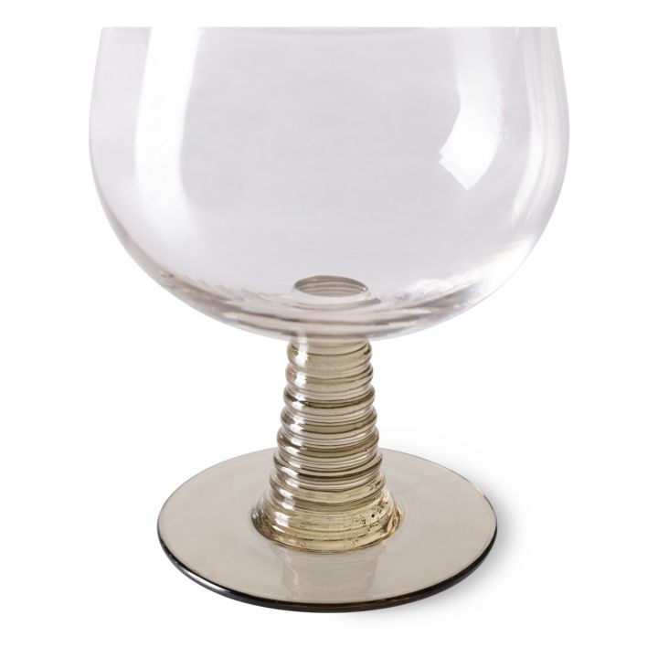Mundgeblasenes Weinglas mit massivem, grün gefärbtem Glasboden.