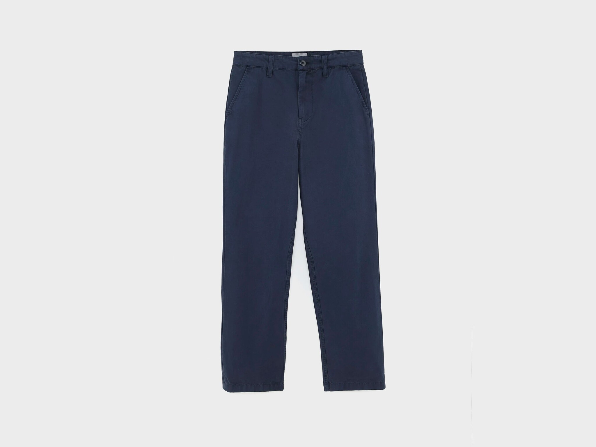 Hose mit normaler Passform aus leichtem Baumwolltwill in einem sanften Hellgrauton mit einer zeitlosen, geraden Silhouette.