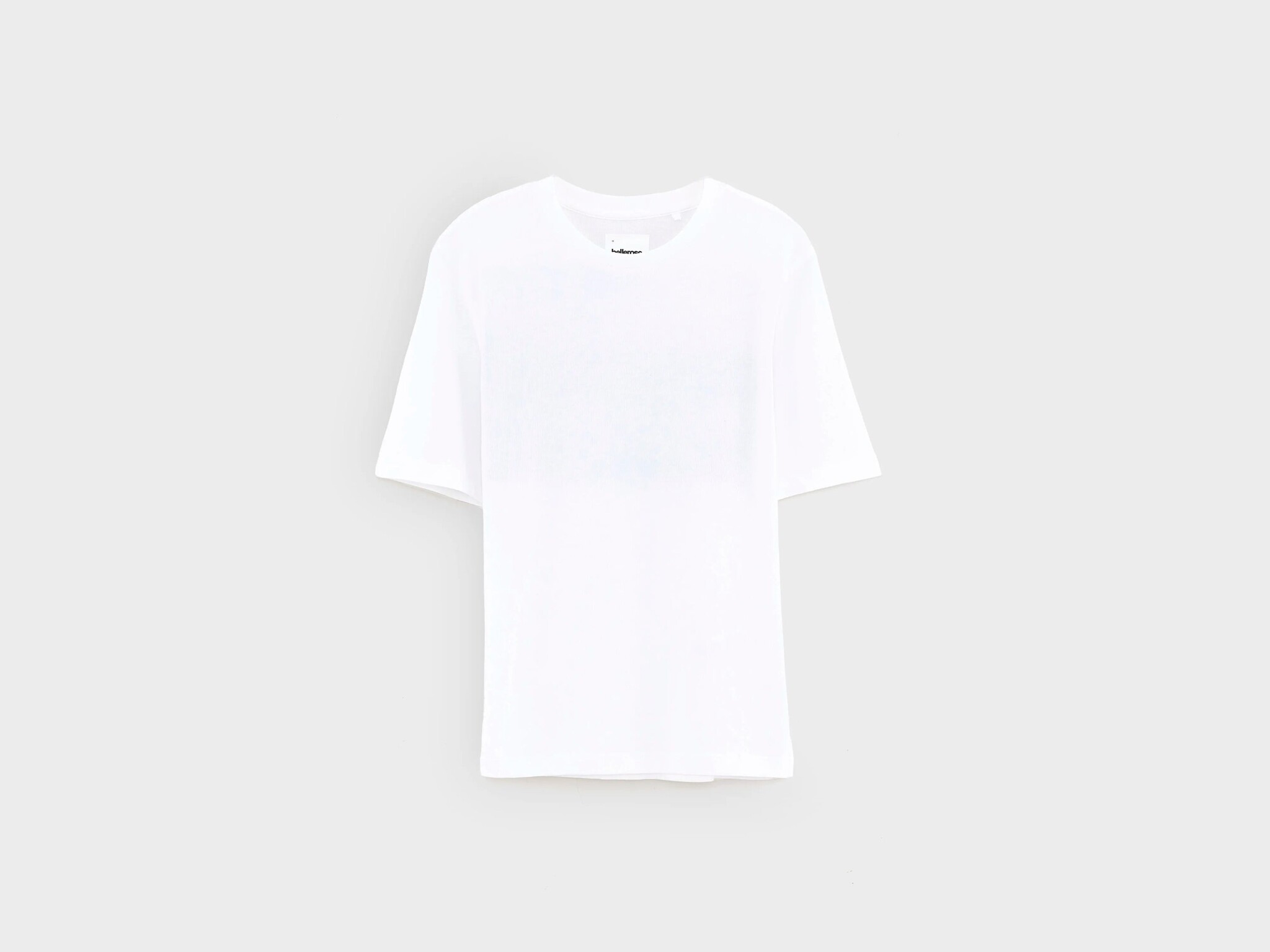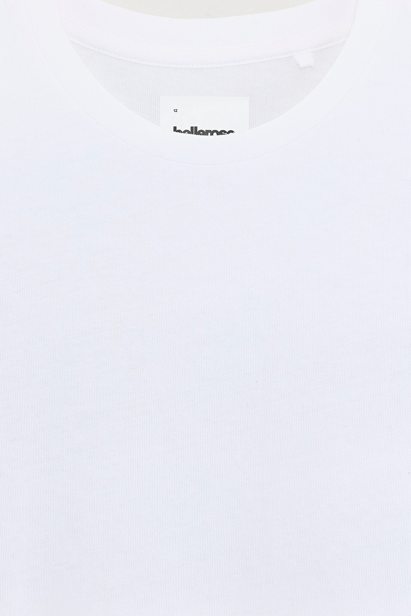 Regular short-sleeve t-shirt in white cotton jersey, featuring a classic crewneck and a small printed “blr” logo on the hem, with a large sunset surf photographic print on the back and a plain front.