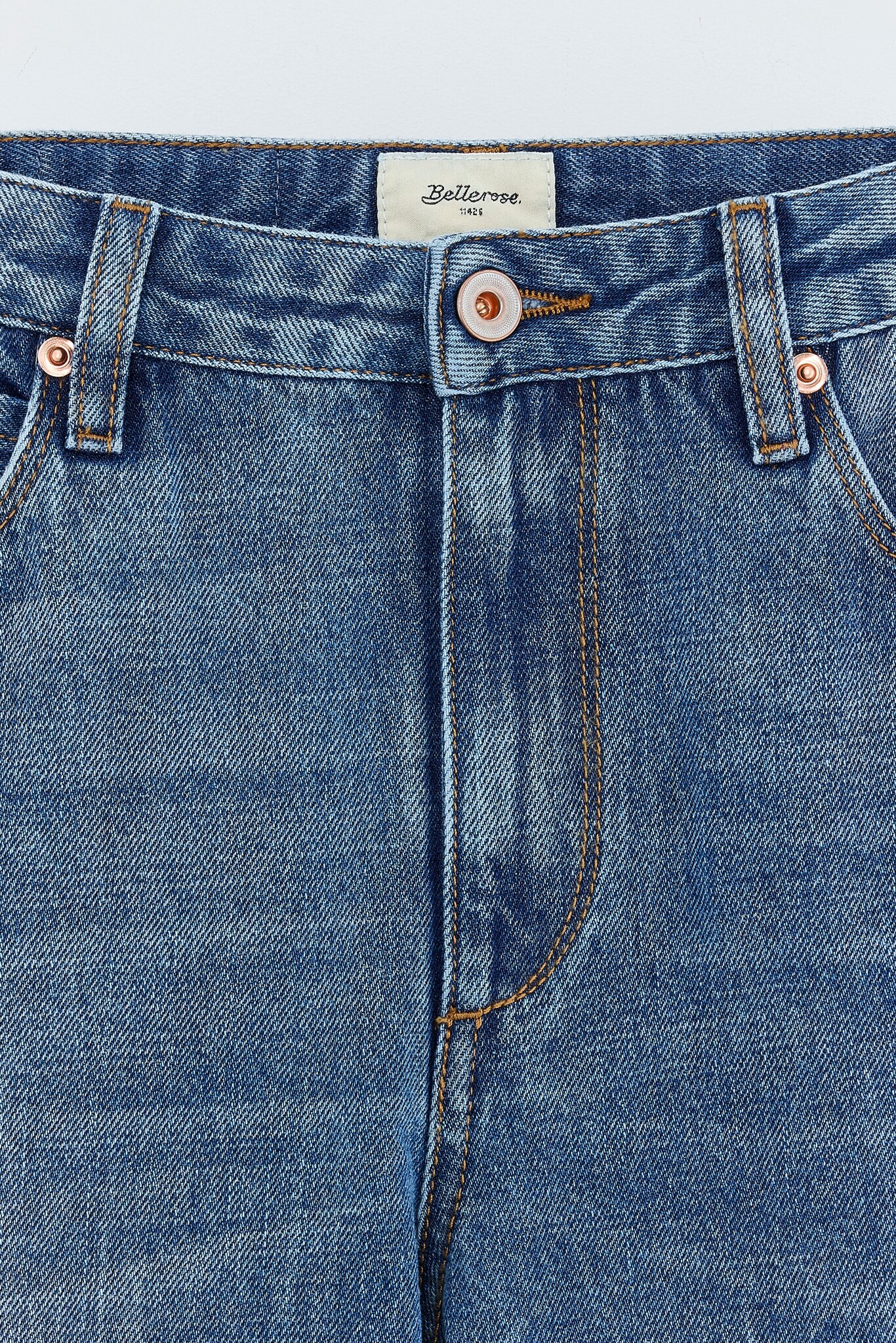 High-rise, flared-leg jeans in blue stone cotton denim.