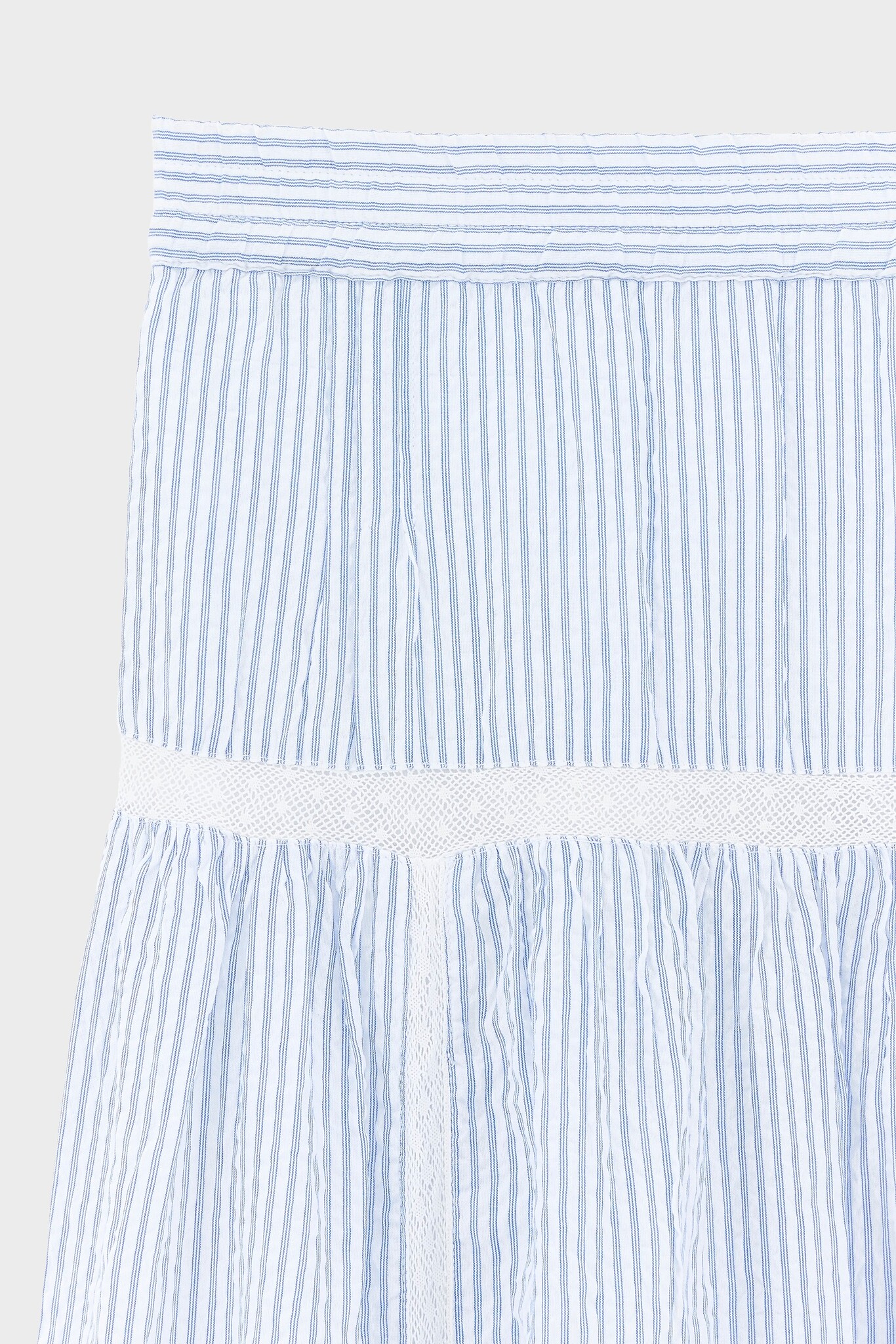 Witte lange rok met kanten inzetstukken en een zacht uitlopend, gelaagd silhouet.