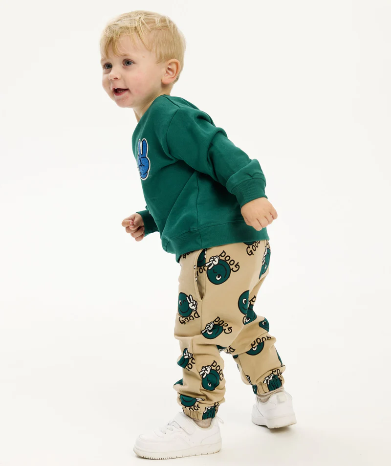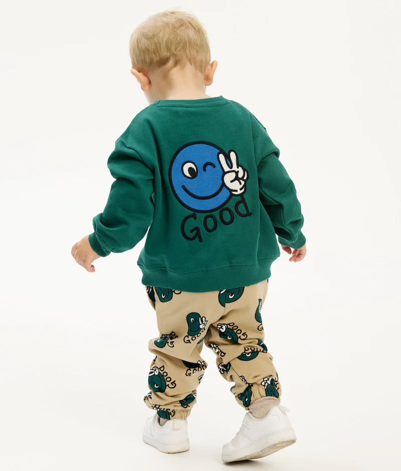 Deze charmante babysweater van THE NEW sisters heeft een all-over print van een knipogende smiley en de tekst "Good". Perfect voor dagelijks gebruik of een gezellig weekendje weg. Deze sweater combineert prachtig met de bijpassende TNSTPhil joggingbroek voor een relaxte look.