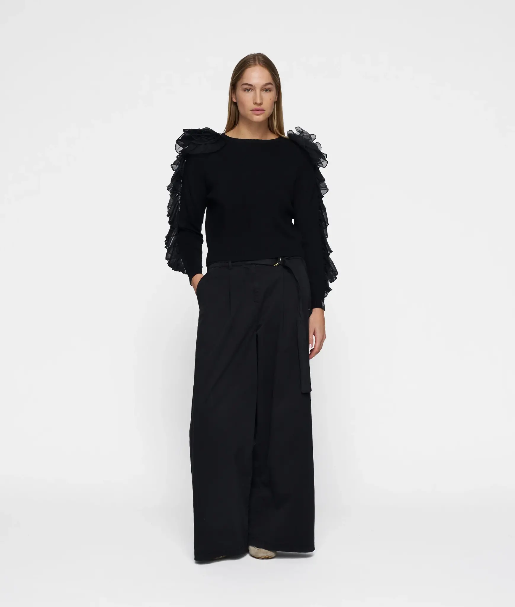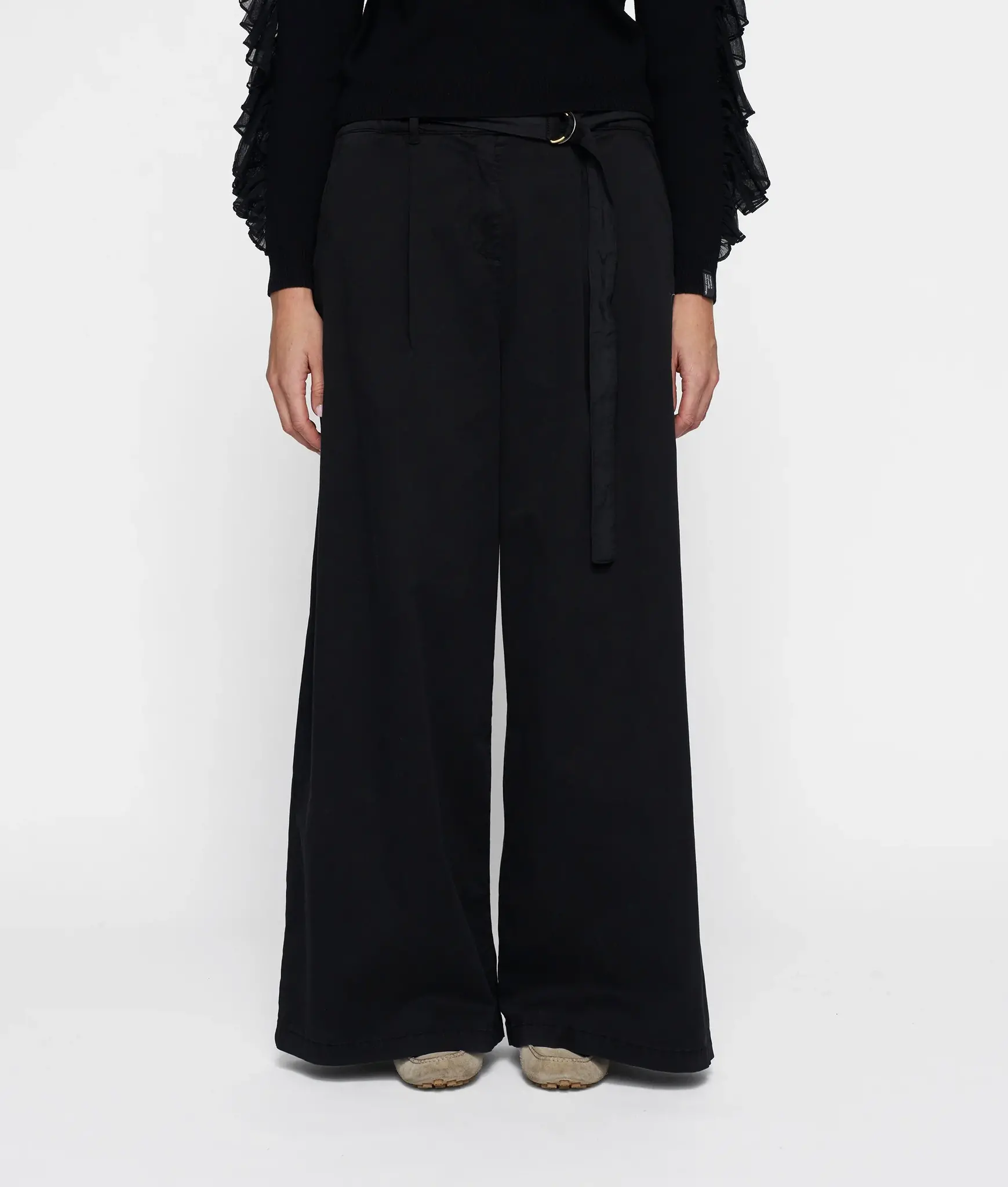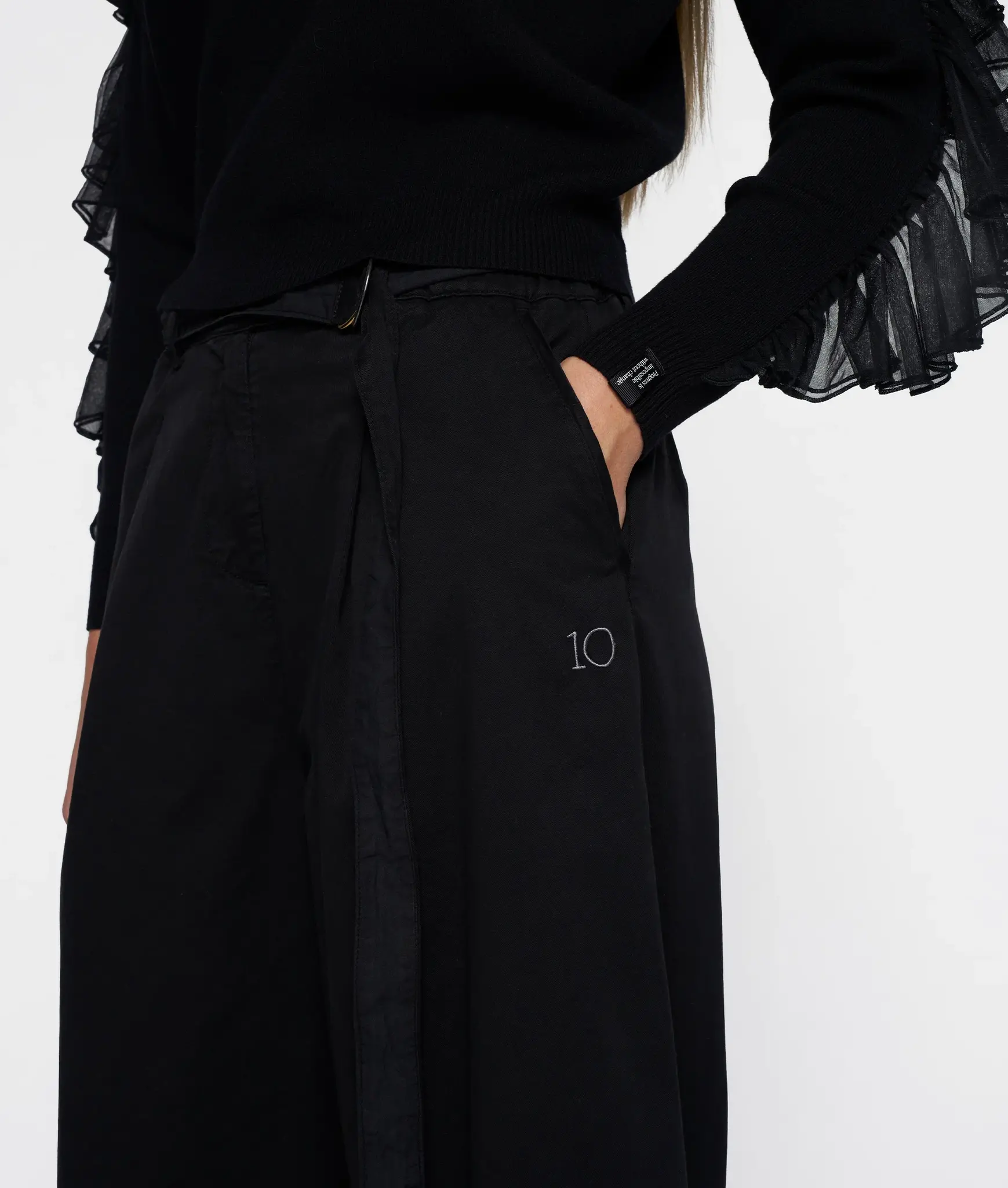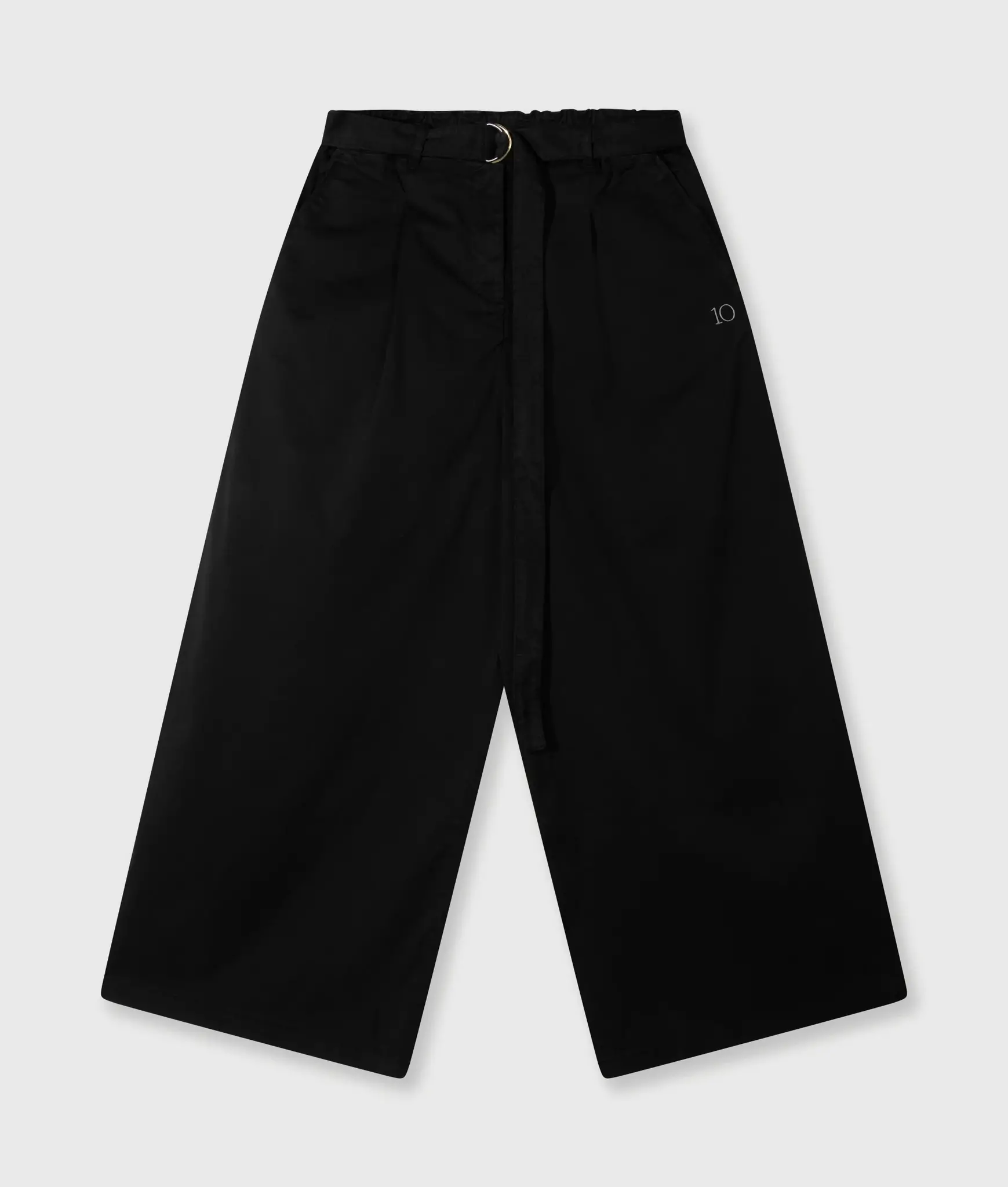 Relaxed fit broek met wijde pijpen en een riem, gemaakt van GOTS-gecertificeerde biologisch katoenen twill. Voorzien van een elastische tailleband met een katoenen canvas riem, schuine steekzakken, een nep-paspelzak en een aangebracht "10"-logo.